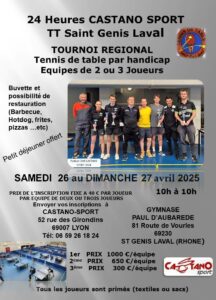 CASTANO SPORT organise chaque année le tournoi des 24H à Saint Genis Laval, épreuve par équipe de 2 ou 3 joueurs. 48 équipes sont engagées.
