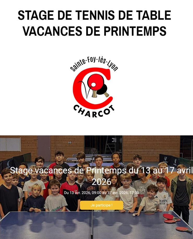 Charcot Ping : Stage vacances de Printemps du 13 au 17 avril 2026 Dates :…
