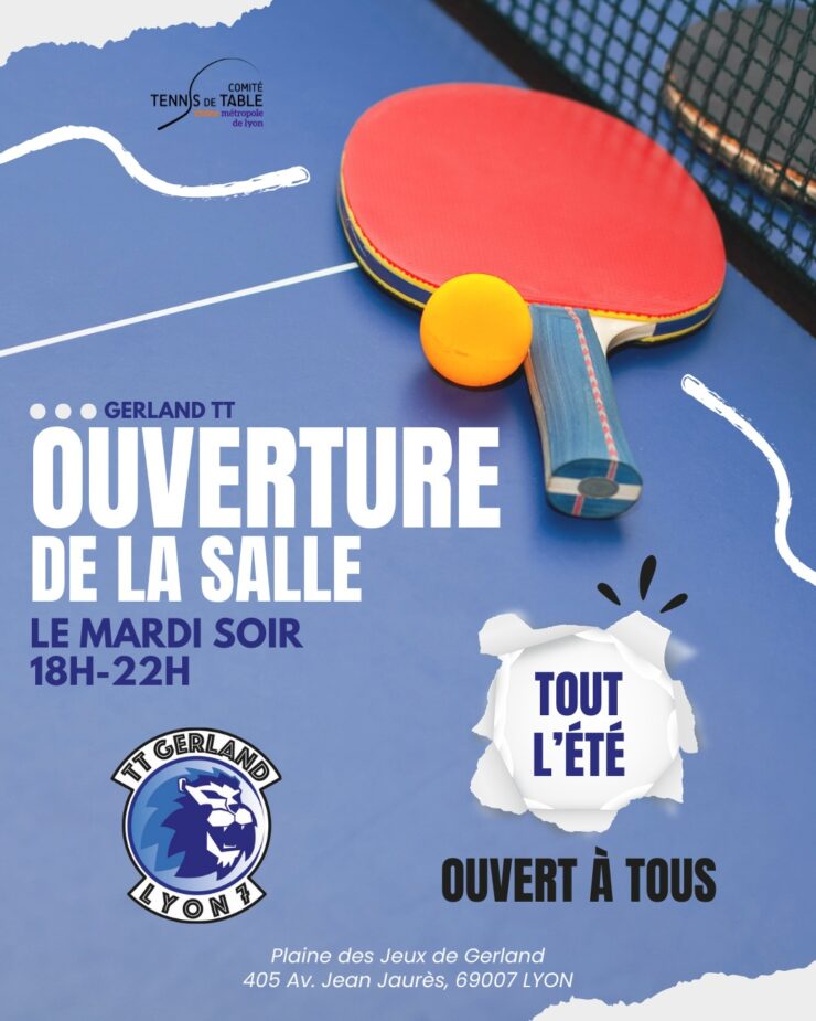 TT Gerland : ouverture de la salle les mardis soir de l’été, de 18 à 22h, en jeu libre