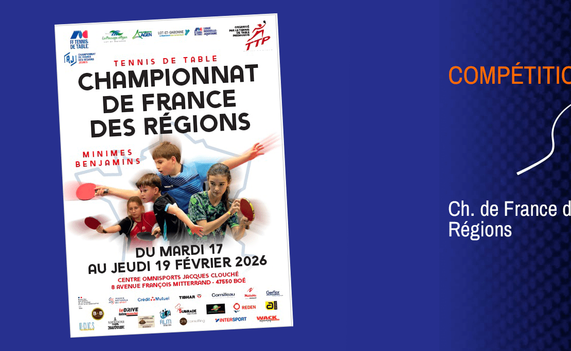 Les Championnats de France des Régions se dérouleront du 17 au 19 février 2026 à AGEN (47).