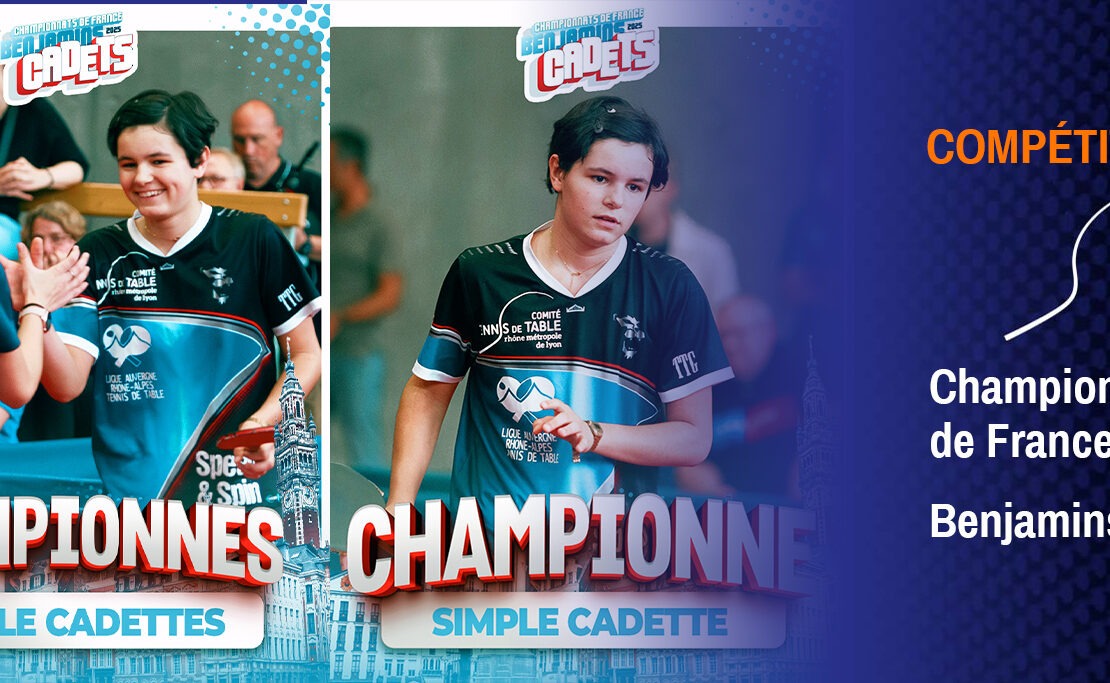 Championnats de France Benjamins-Cadets à Lille : Alexia NODIN sacrée en simple et en double ! Et de belles perf' pour les rhodaniens.