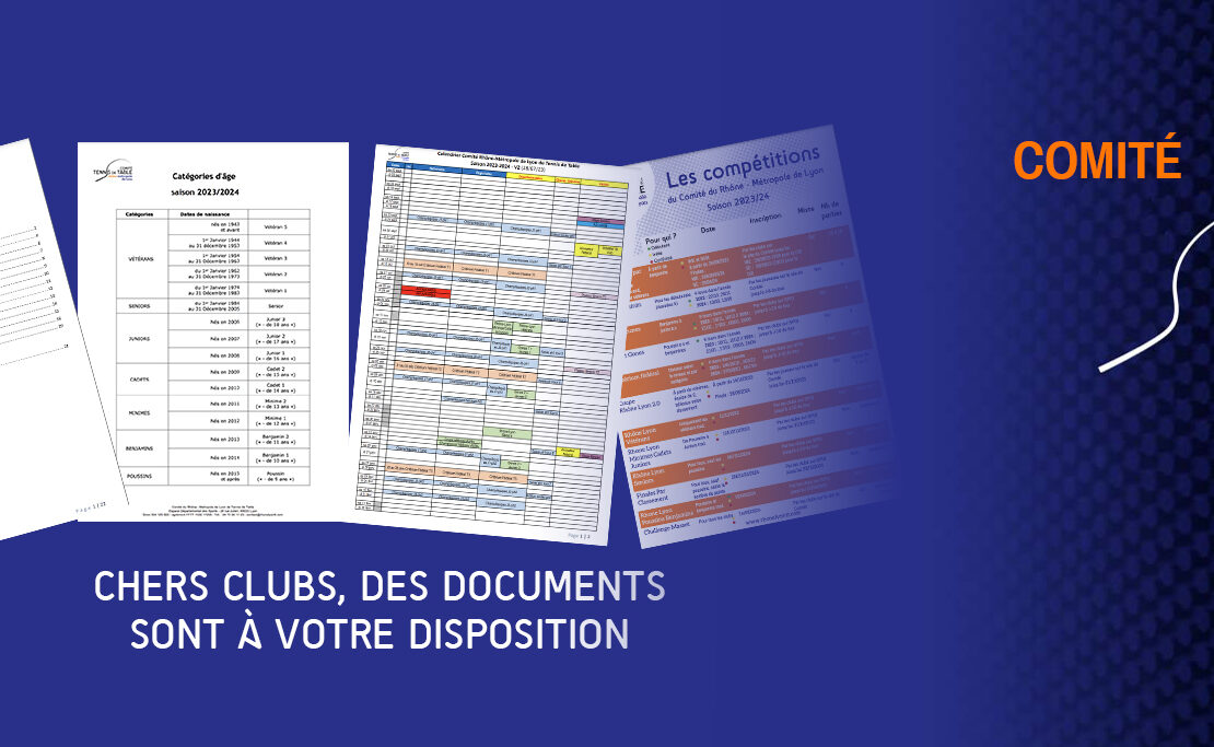 Chers clubs, le Comité met à votre disposition sur ce site un ensemble de documents pour organiser votre année sportive.
