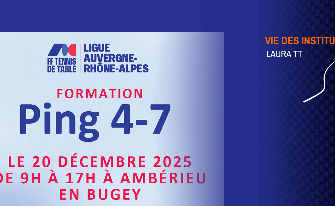 La Ligue Auvergne Rhône Alpes de tennis de table organise une journée de formation dédiée au Ping 4-7 ans, à destination des entraîneurs bénévoles ou professionnels ainsi que de tous les licenciés susceptibles d’encadrer un créneau dans leur club.