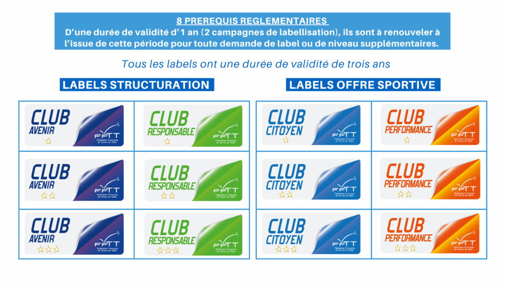 Cette labellisation engageant la Fédération, huit prérequis règlementaires sont exigés préalablement à toute demande de label.