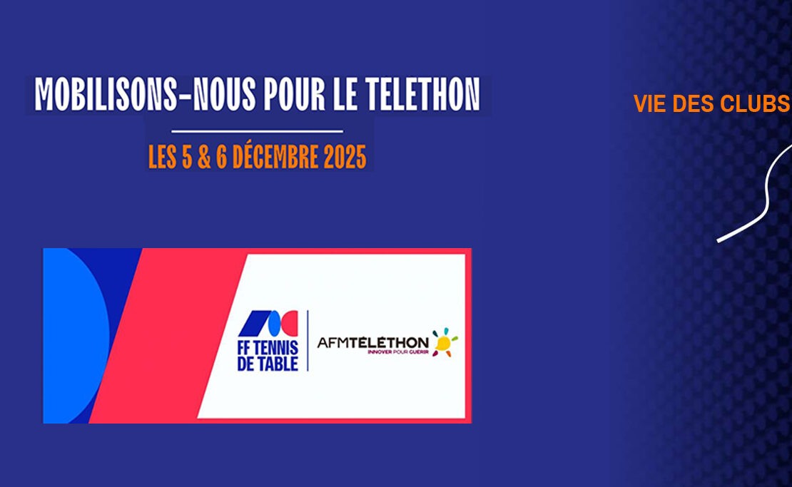 Afin de vous accompagner dans l’organisation de votre animation Téléthon, la FFTT met à votre disposition des fiches actions pour ce Téléthon 2025. Des inspirations et propositions pour mobiliser le plus de personnes et collecter un maximum de dons.