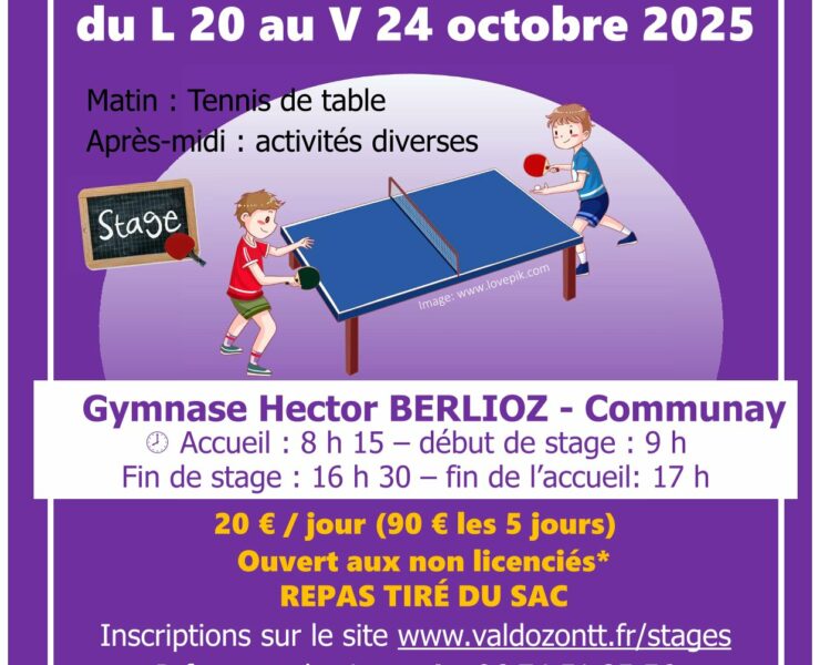 Stage Toussaint : tennis de table à Val d’Ozon TT du 20 au 24 octobre