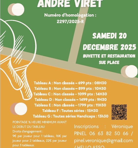 Samedi 20 décembre 2025 : 9ème Tournoi régional André Viret à Brignais