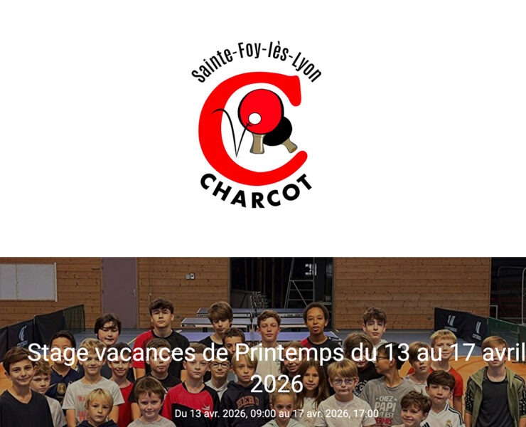 Charcot Ping : Stage vacances de Printemps du 13 au 17 avril 2026