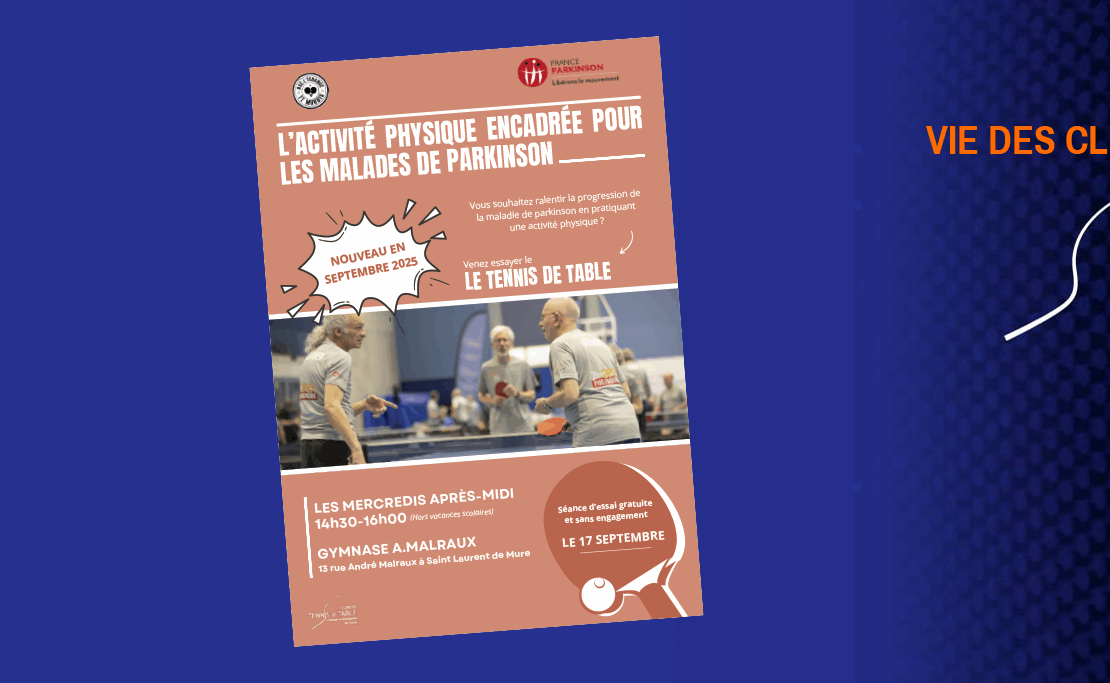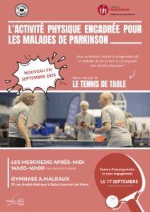 À partir du 17 septembre, le Comité du Rhône de France Parkinson, en partenariat avec le club de l’ASCE TT Murois, met en place des séances de tennis de table adaptées, ouvertes à toutes les personnes concernées par la maladie de Parkinson.