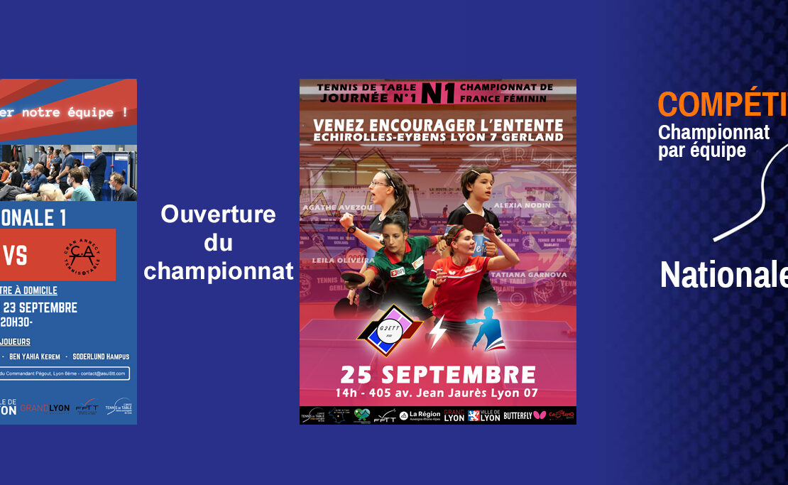 Championnat de France féminin - Dimanche 25 septembre à 14h : Entente Echirolles-Eybens Lyon 7 Gerland Vs Antony Sport TT