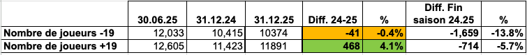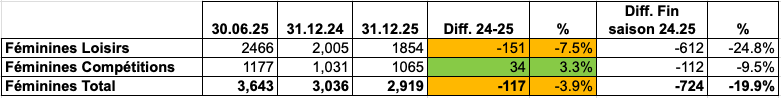 Point sur l'évolution du nombre de licenciés au 31 décembre 2025