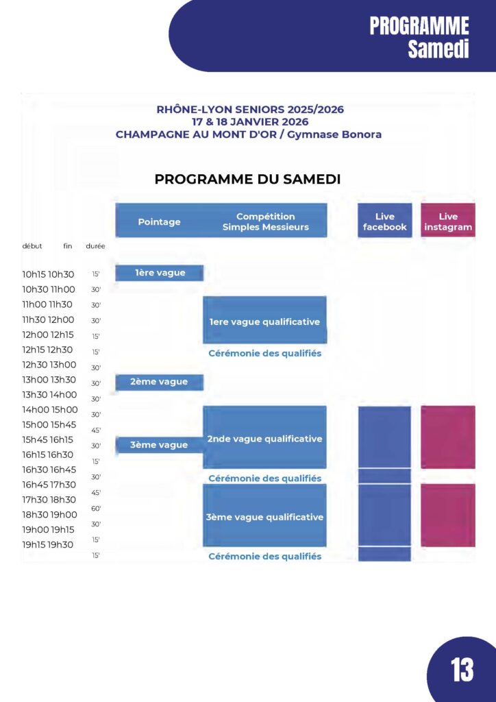 Retrouvez le programme de la compétition du week-end !