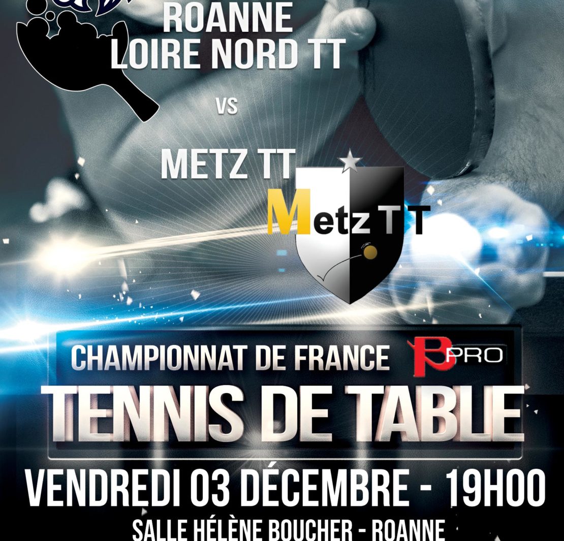Ce vendredi 3 décembre 2021 à 19h à Roanne aura lieu la 7eme journée de PRO-B-Messieurs : LOIRE NORD TT face au METZ TT.